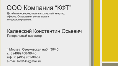 Разработка дизайна визитки для компании «КФТ»