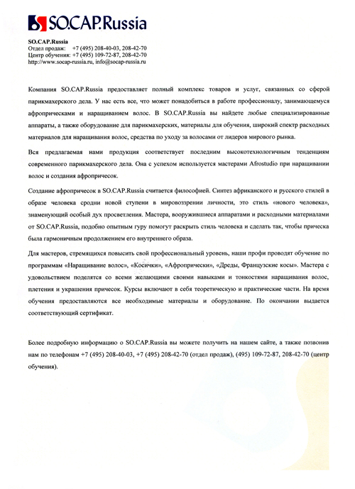 Фирменный бланк студии "SO.CAP.Russia"