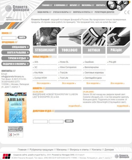 СП "Планета Фонарей" «Planet of Lanterns» - так решил именовать свою фирму коллектив единомышленников, выбравших для себя приоритетом развитие рынка высокотехнологичных и качественных фонарей. Мы чётко понимаем жизненную необходимость обеспечения надёжной работы в любых условиях. Наши фонари обеспечивают работу в дождь и снег, в тумане и в дыму, т.е. там, где использование других средств невозможно или затруднено.