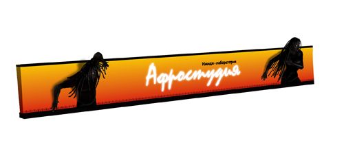 Разработка наружной вывески для студии «Афростудия»Задача: разработать макет наружной вывески для студии «Афростудия». Что мы имеем: Пример ранее разработанного макета. Процесс: Вариант созданный неизвестным художником не устроил заказчика по весьма объективным причинам. Без погружения в детали – это цвет.