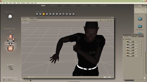 Используя Poser задаем подходящим моделям необходимое положение, далее эти модели будут очень полезны при формовке масштабных объектов. В итоге получился вариант №1 Состав: короб из композитного материала, аппликация градации темного цвета на прозрачной пленке, светорассеивающее стекло, внутренний ламповый подсвет, объемные фигуры, аппликация из черной пленки.