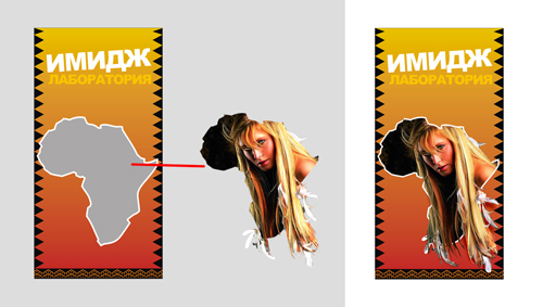 Дальнейшее движение к истине началось с гибрида варианта с африкой и объемной фигуры с дредами (см. ниже). После некоторого совещания заказчик высказался отрицательно по поводу идеи с объемными фигурами и дредами в целом.