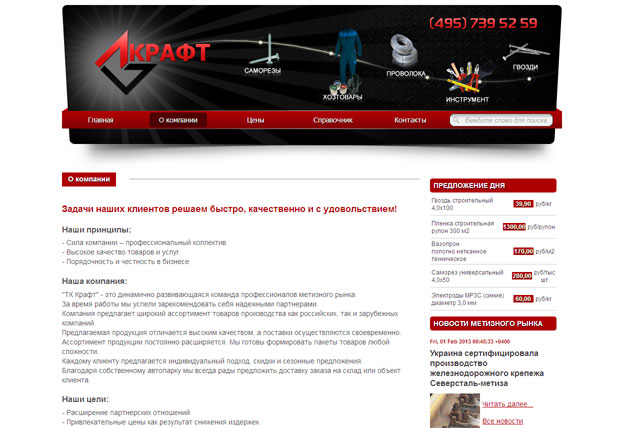 «ТК Крафт» занимается продажей металлоизделий и некоторых сопутствующих товаров. Клиенты могут воспользоваться собственной системой доставки «ТК Крафт».